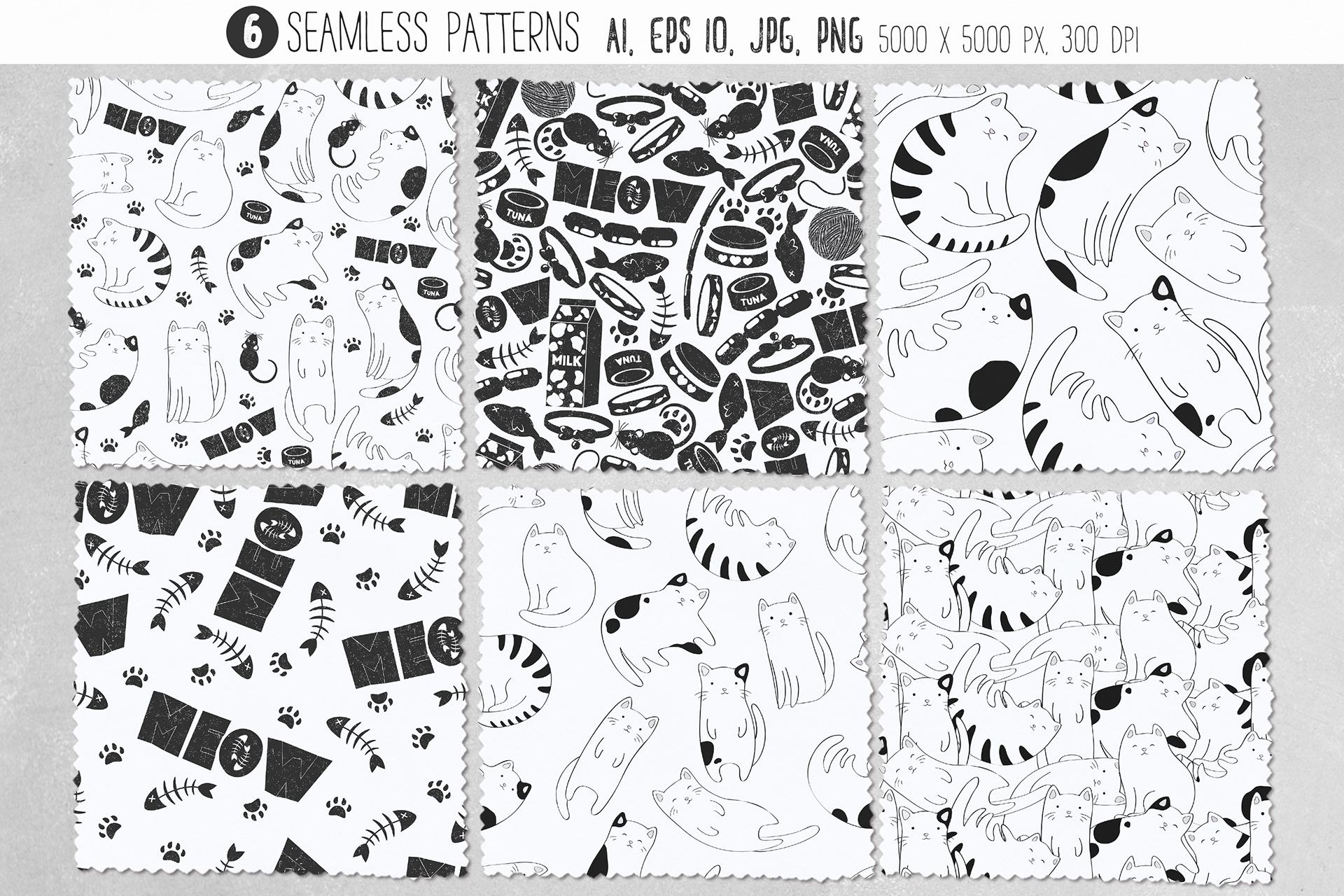 All You Need is Love and a Cat collection with seamless patterns, cliparts and illustrations. Collection include cute line art cat characters and other cat's elements. Vector files can be scaled at any size. PNG files placed on transparent background. Patterns can be duplicated and placed side-by-side without separations. Perfect for create clothes, kids apparel, branding, greeting cards, posters, invitations, nursery decoration, fabric and textile, packaging, scrapbooking, stationary, wrapping paper, wallpapers, mobile covers and skins, digital papers, web designs and for many beautiful projects.